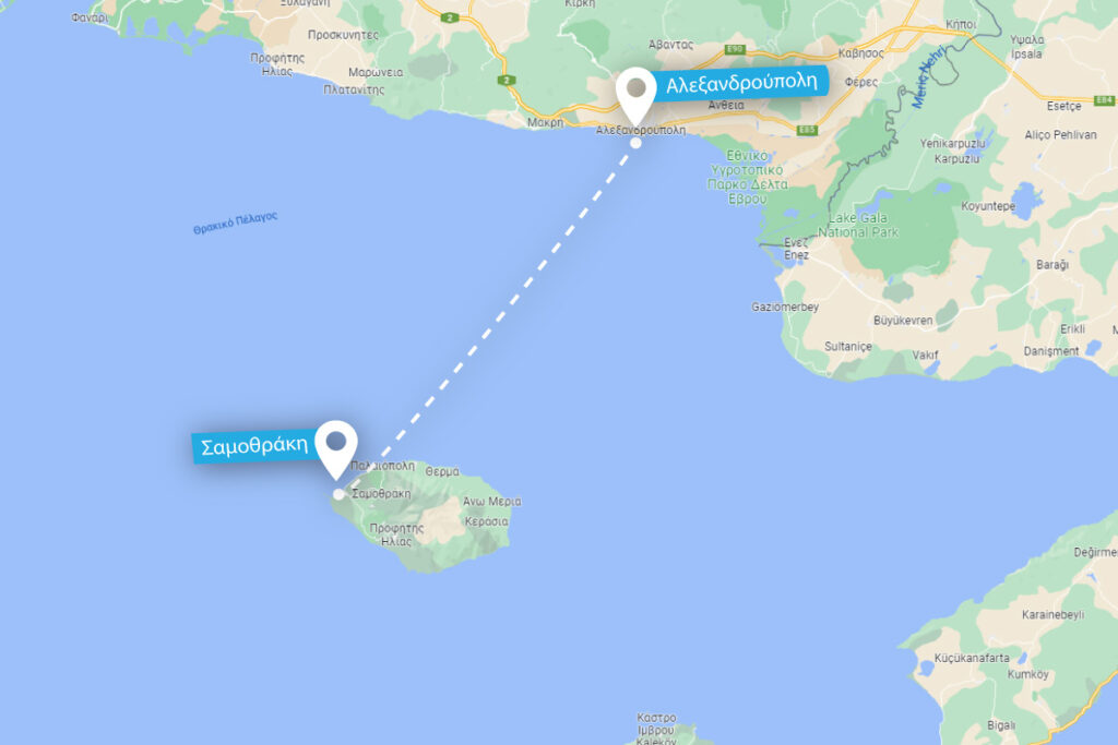 Απόσταση Σαμοθράκης - Αλεξανδρούπολης